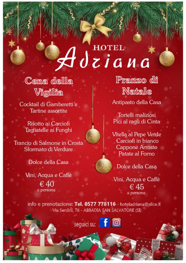 L’Hotel Adriana vi augura buone feste. Contattateci al numero 0577778116 o hoteladriana@alice.it!